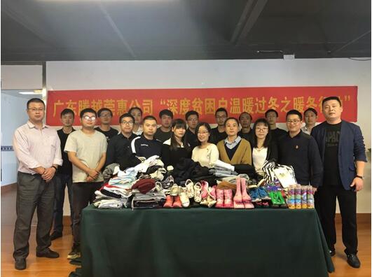 眾人拾柴火焰高,暖冬行動情意濃,這個(gè)11月,廣東騰越黨委、工會聯(lián)動集團(tuán)扶貧辦開展的“深度貧困戶溫暖過冬之暖冬行動”成果顯著,愛心滿溢!截止到目前,已有19大分公司近1000員工加入廣東騰越愛心隊(duì)伍,并自發(fā)開展各具特色“暖冬捐衣活動”,為深度貧困戶帶去他們的祝福與關(guān)懷。