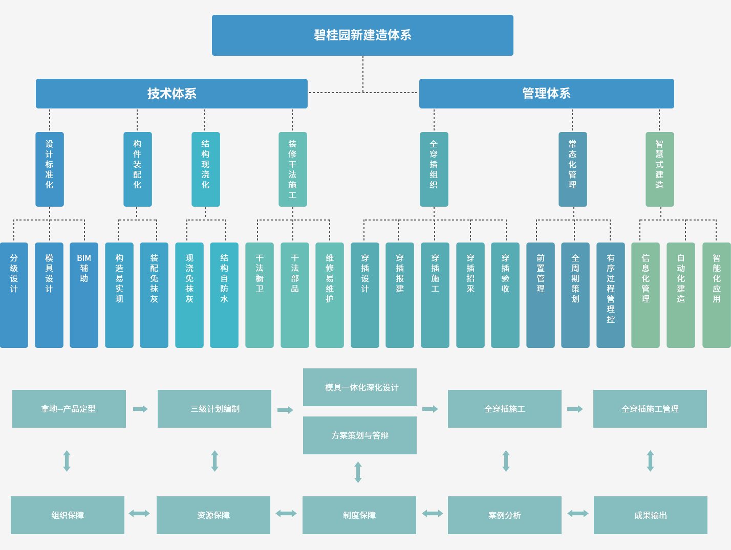 它對建筑工業(yè)化技術(shù)體系、管理體系進(jìn)行系統(tǒng)化應(yīng)用,以裝配、現(xiàn)澆、機(jī)電、內(nèi)裝等多個維度建筑工業(yè)化技術(shù)體系為基礎(chǔ),結(jié)合標(biāo)準(zhǔn)化設(shè)計(jì)、零變更集成深化、綠色建造等手段,借助“8+1”完美運(yùn)營、全穿插施工管理、常態(tài)化質(zhì)量管控、建造過程可視化管理、安全文明施工信息化管理、“十條”紅線、全天候工地開放、產(chǎn)業(yè)工人培訓(xùn)等管理體系,提升工程項(xiàng)目的管理水平及產(chǎn)品質(zhì)量、縮短建設(shè)周期、提升住宅產(chǎn)品質(zhì)量和人民居住品質(zhì),打造高科技現(xiàn)代住宅。